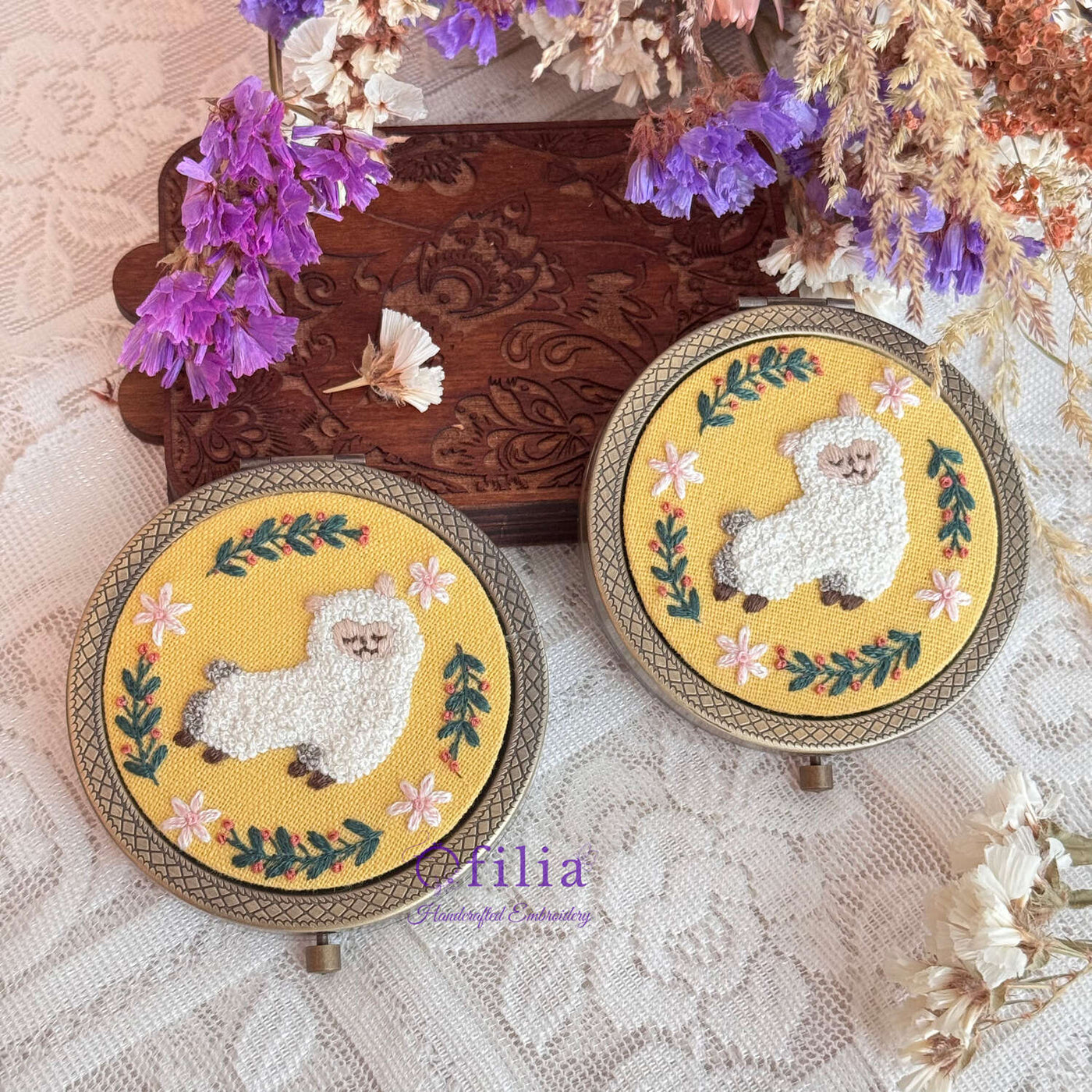 Valkoisen alpakkan ja kukkaisen oksan taskupeili
