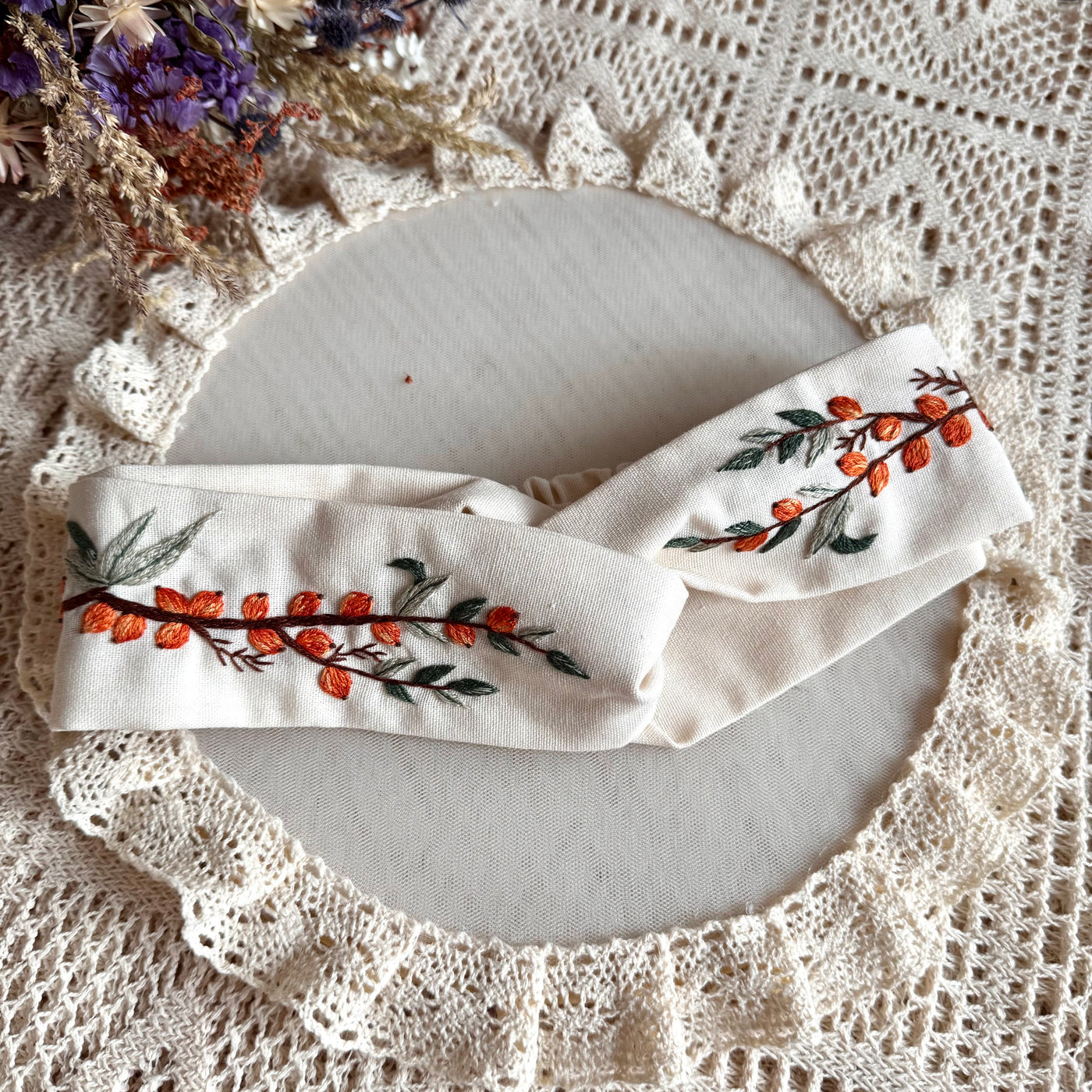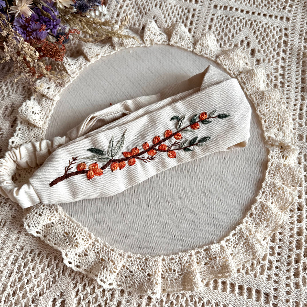 Jokainen hiuspanta on koristeltu herkän kauniilla kukka- ja kasviaiheisilla kirjailuilla, jotka tuovat siihen ainutlaatuista käsityön eleganssia ja luonnon inspiroimaa viehättävyyttä.