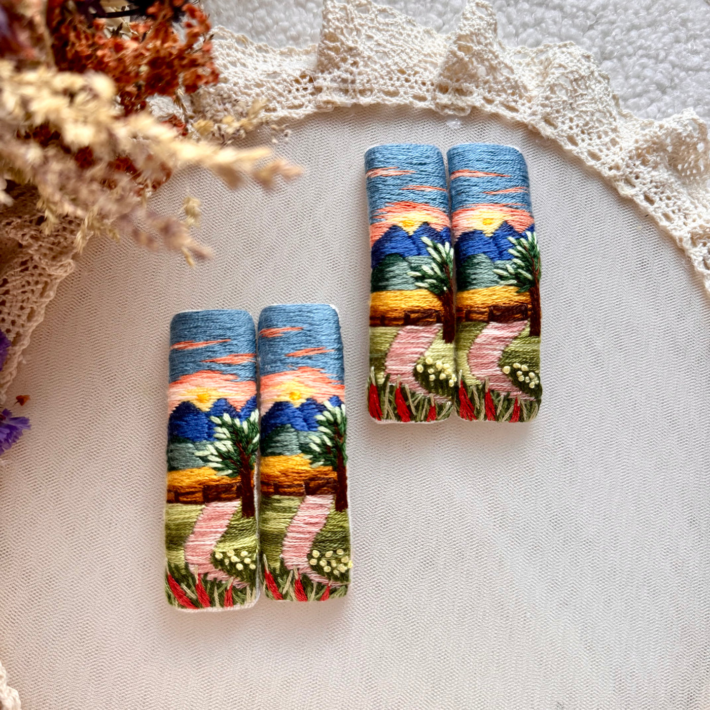 Syksyinen auringonlasku maisemahiuspinni