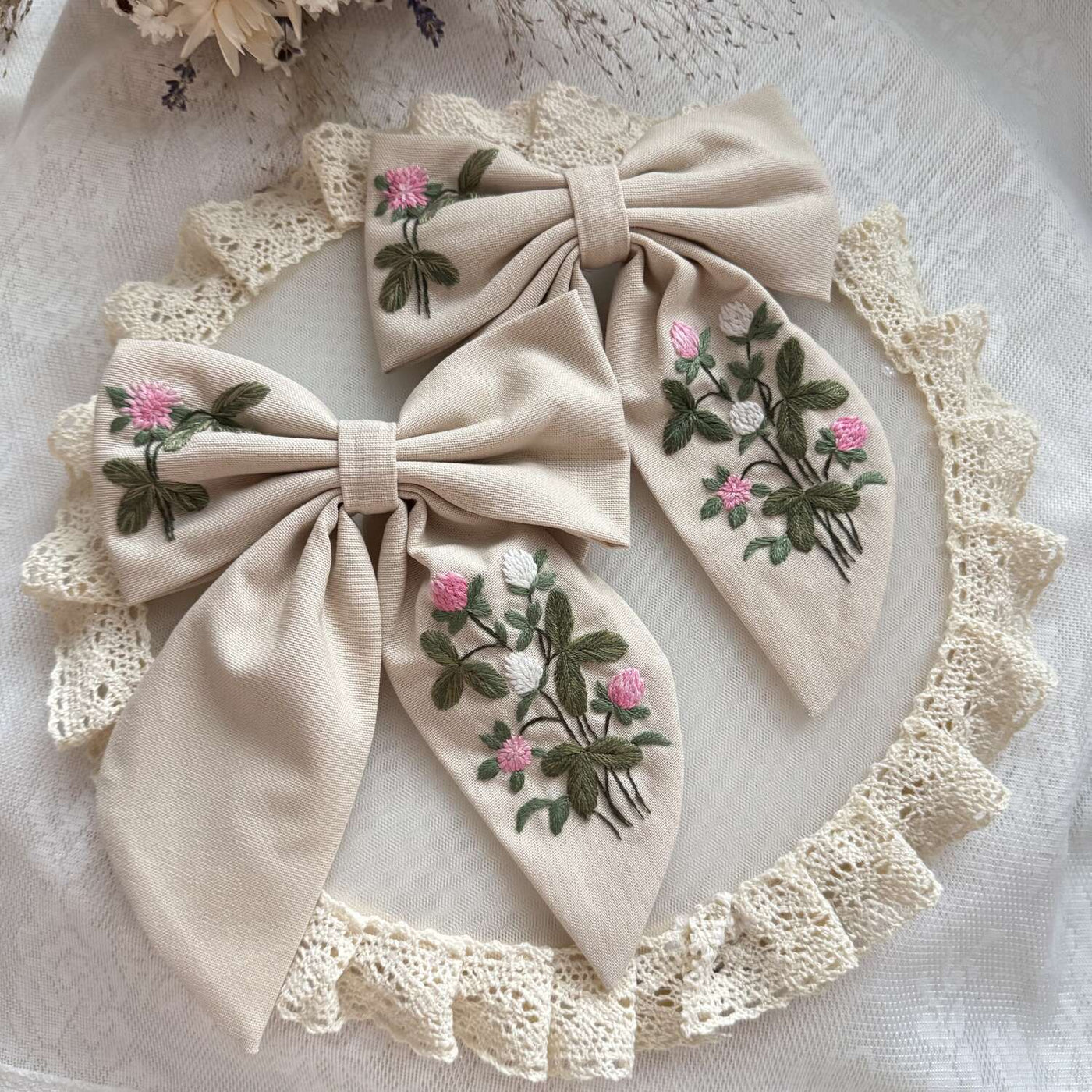 These beautifully handcrafted hair bows are made with love and meticulous attention to detail. Soft organic linen is delicately embroidered to create designs full of charm and character. Each bow is a little piece of art, perfect for adding a personal touch to your look.