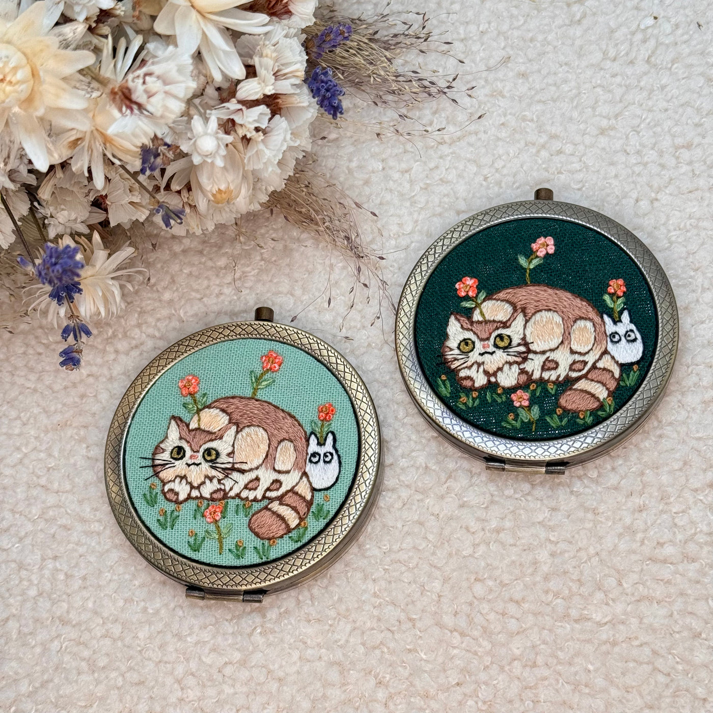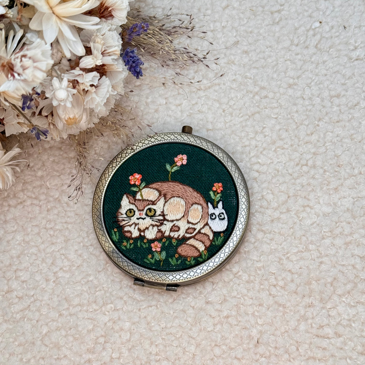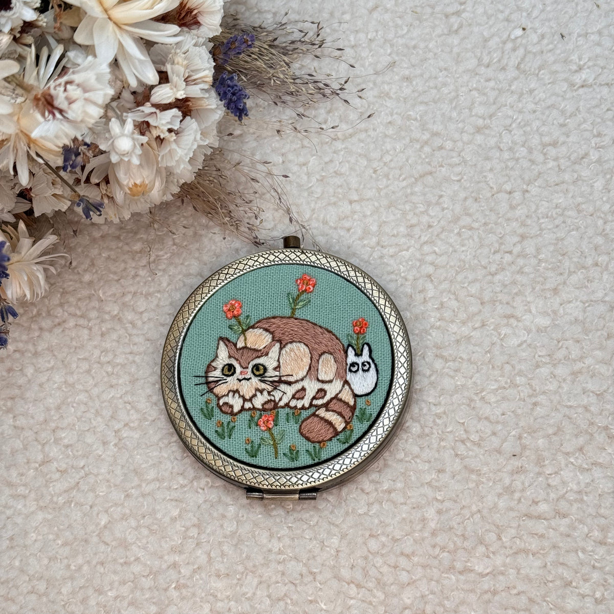 Tämä kompakti peili on päällystetty käsinkirjailtulla kankaalla, jossa on hurmaavia anime-aiheisia yksityiskohtia – jokainen kappale on kuin pieni pala suosikkitarinaasi.